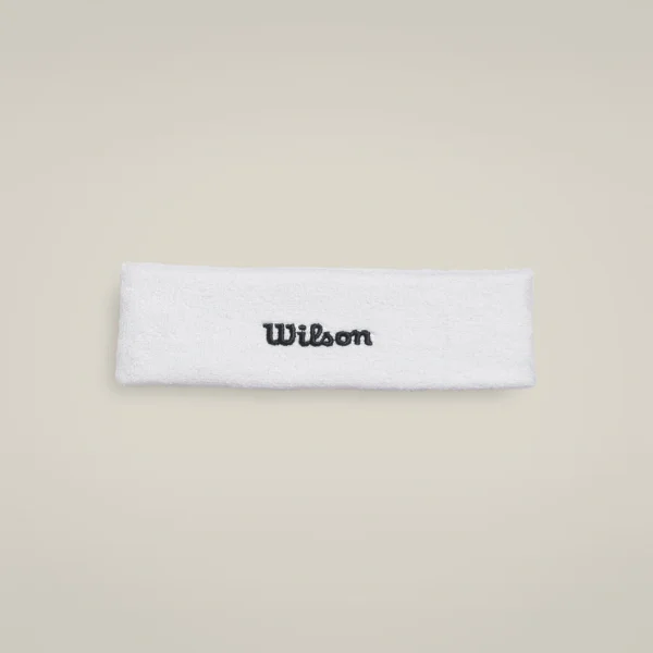 The Wilson Headband is ideal for all Tennis players. Prevents sweat from entering the eyes during play. The elastic fabric makes it easy to adjust the fi Tennis White model with red logo on the fron Tennis